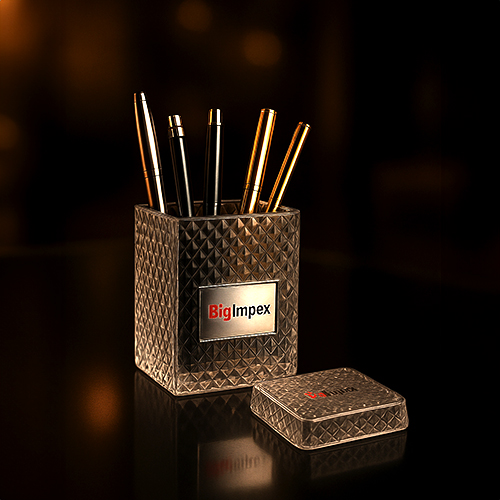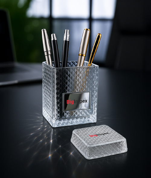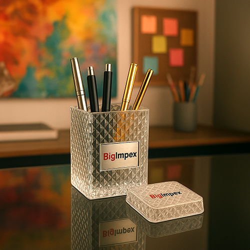 Add elegance and functionality to every desk with this premium crystal-cut glass holder and tray set. Crafted from substantial heavyweight glass, it doubles as a sleek pen holder and multipurpose organizer — perfect for clinics, offices, or workstations. The timeless crystal texture reflects sophistication, while the stable weighted base ensures durability and balance. With a large customizable branding area, it’s an ideal corporate gift that enhances brand presence with class and style.